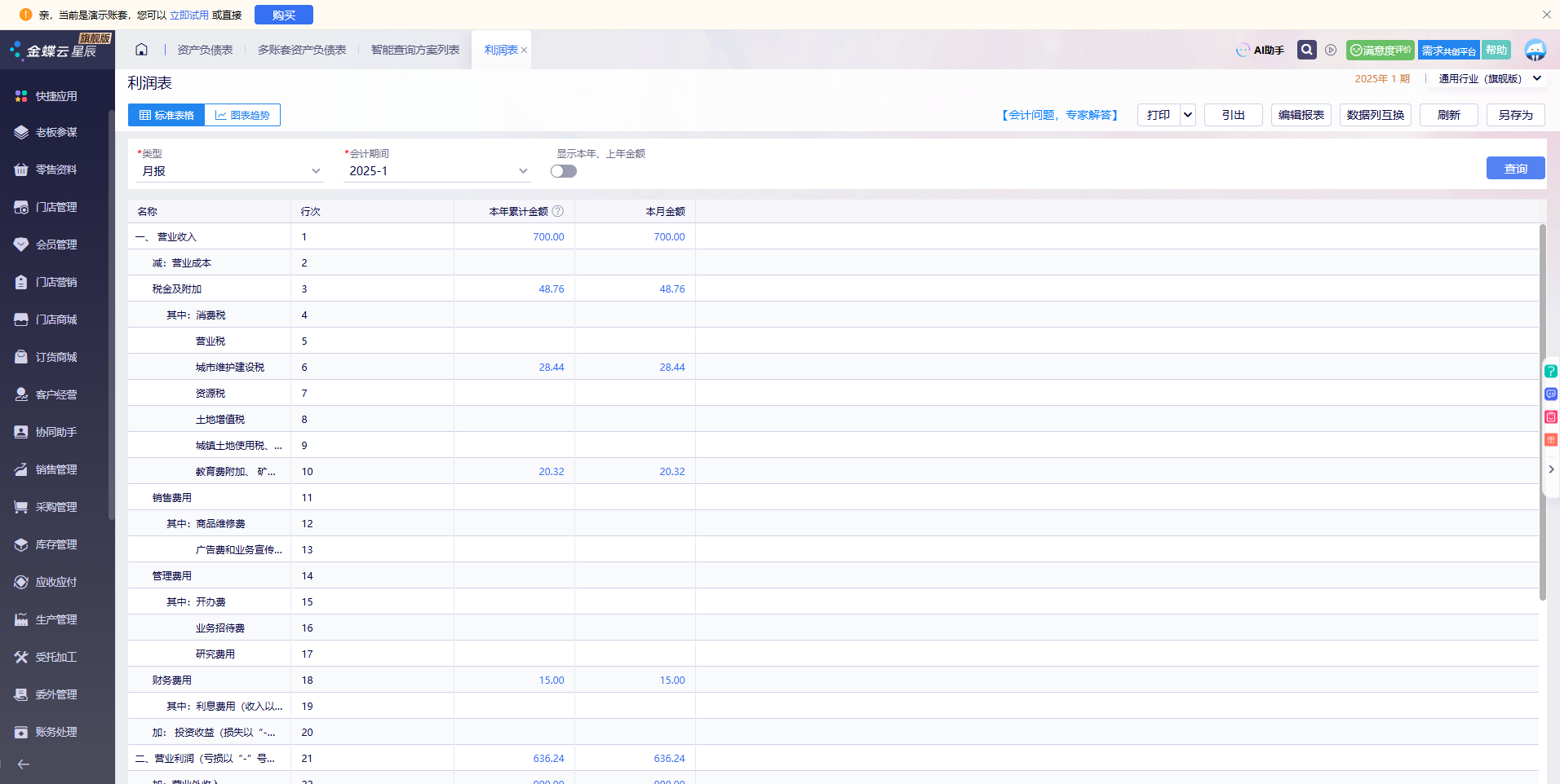 企业高效财务决策依赖于精准数据,同花顺财务报表下载操作繁琐、分析效率低。金蝶AI星辰支持财务报表自动化采集,内置智能分析模型与可视化工具,打通数据获取到业财洞察全流程,助力企业快速定位经营风险,提升决策精准度。