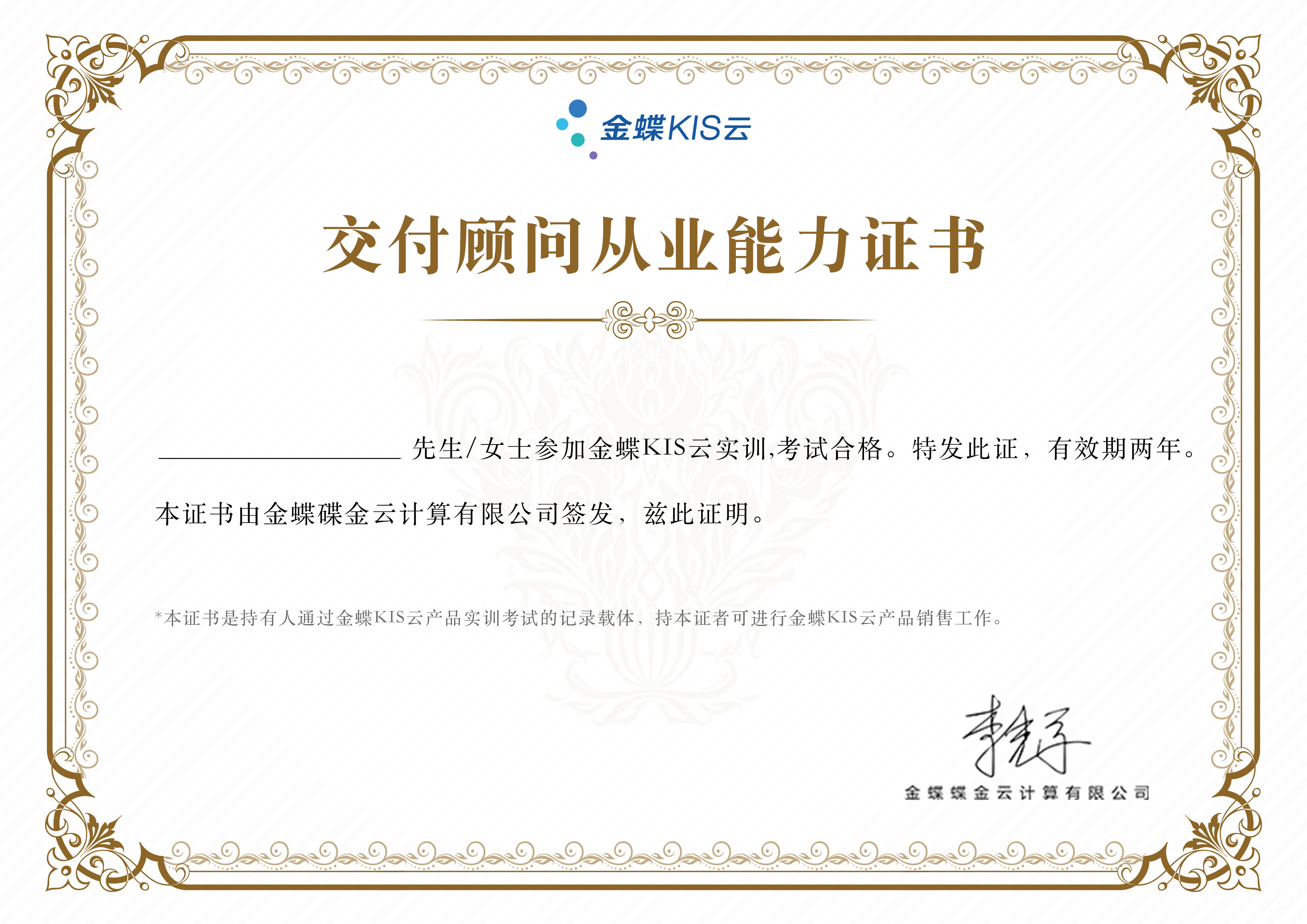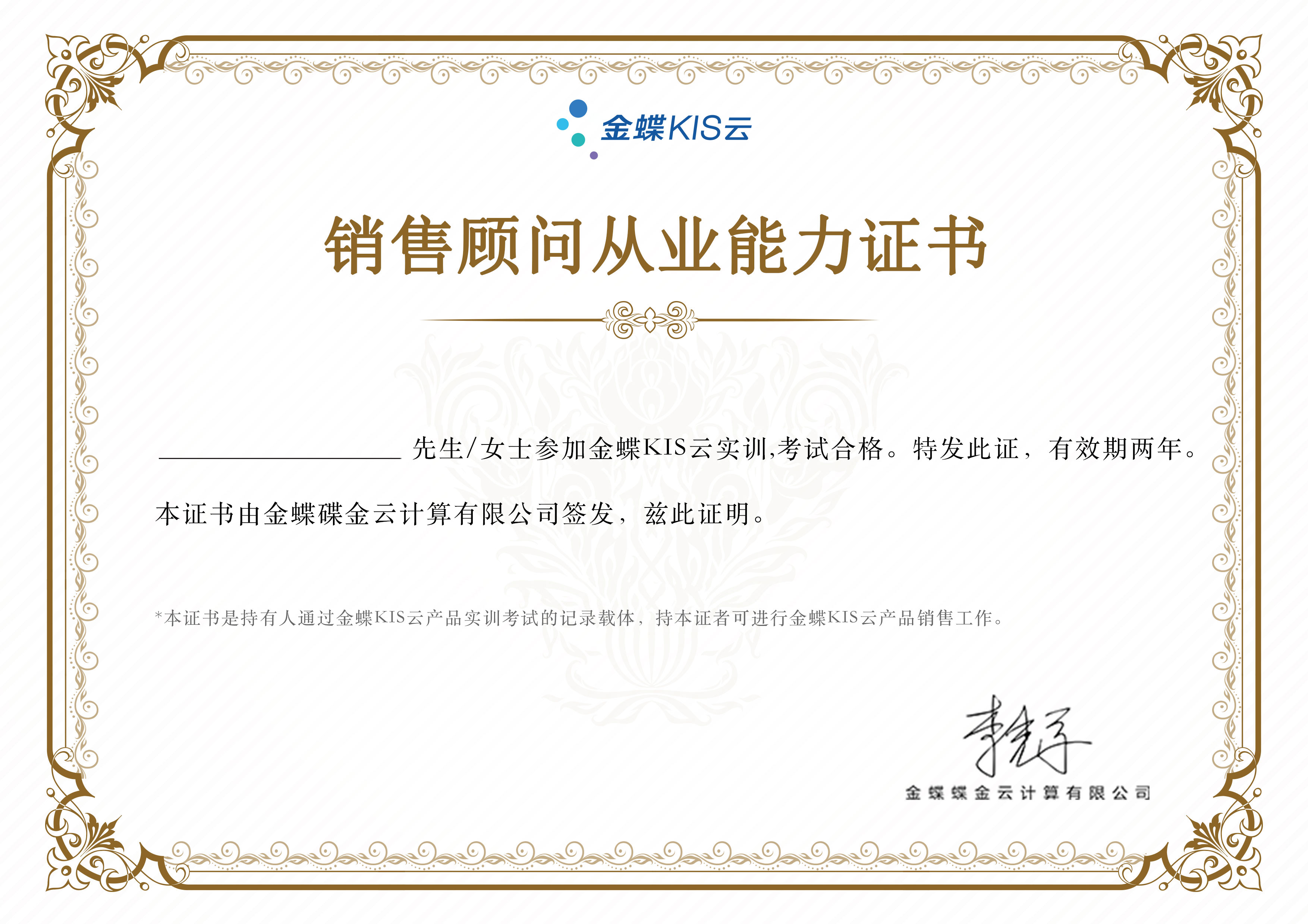KIS云销售证书