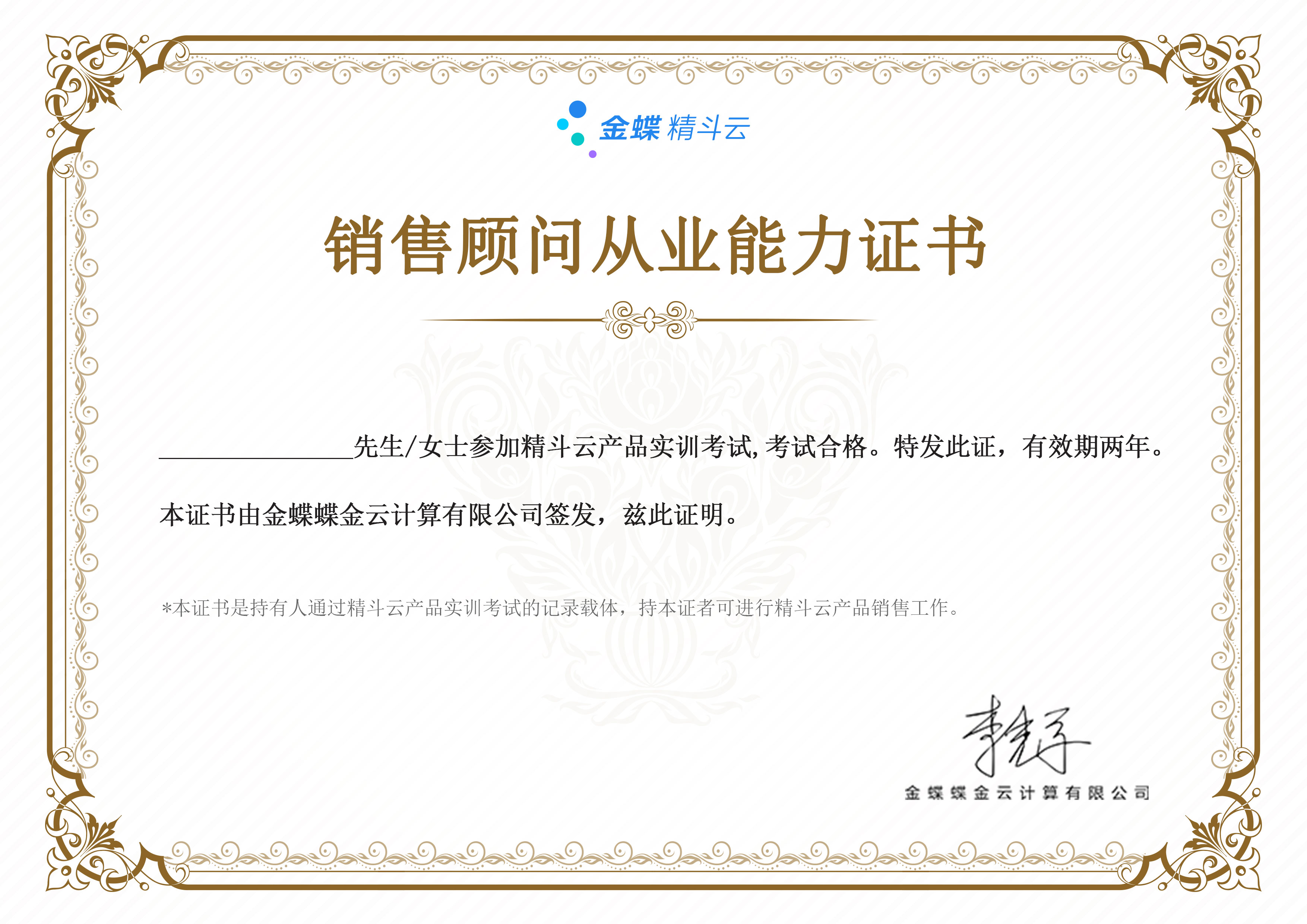 精斗云销售证书