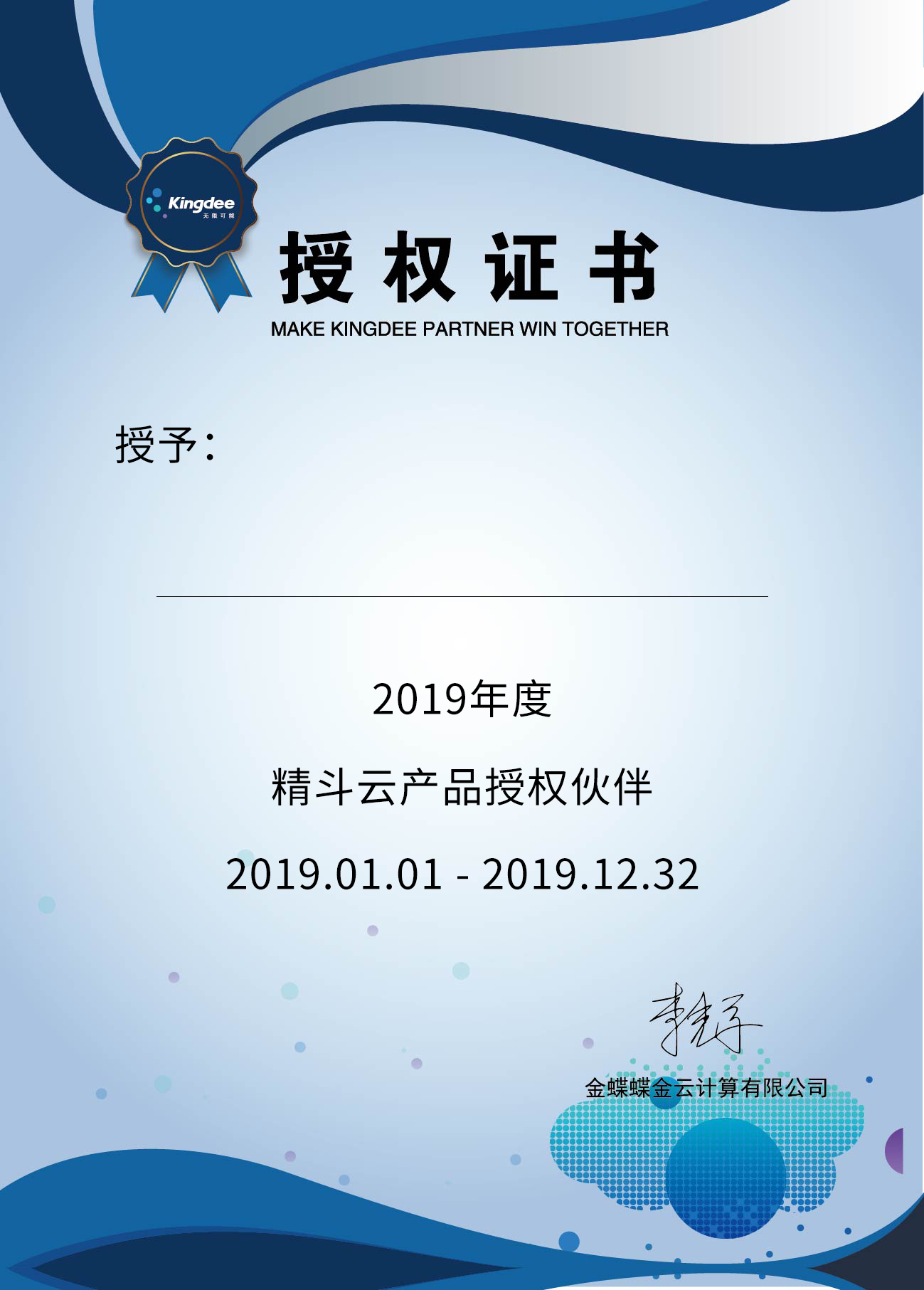 精斗云交付证书