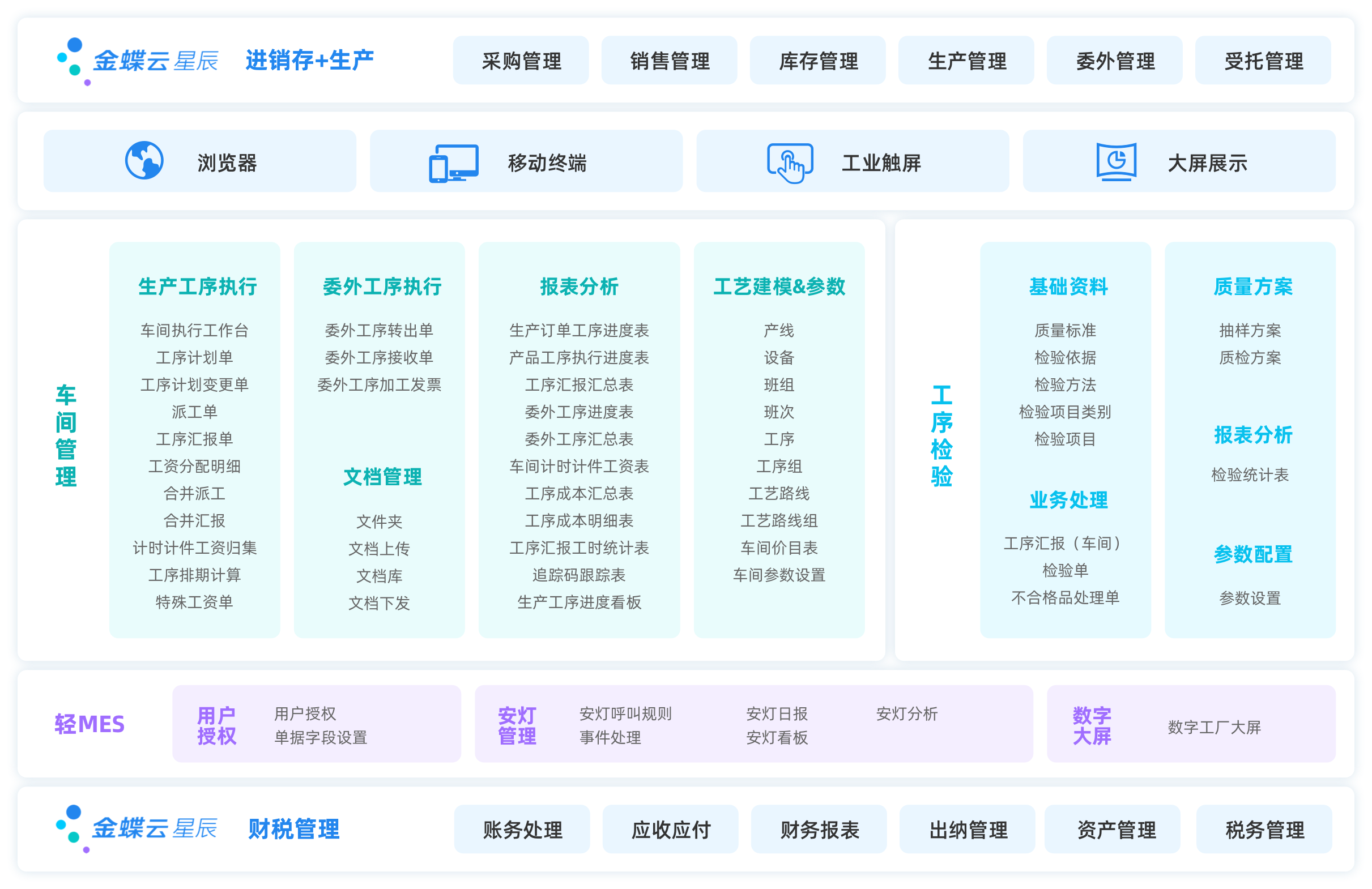 使用产品: 金蝶云·星辰 旗舰版 进销存+生产管理+车间管理+质量管理+轻MES